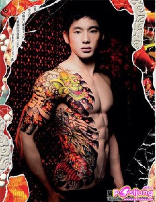 肌肉男右胸威猛巨龙刺青_龙纹身图案大全_纹身图吧