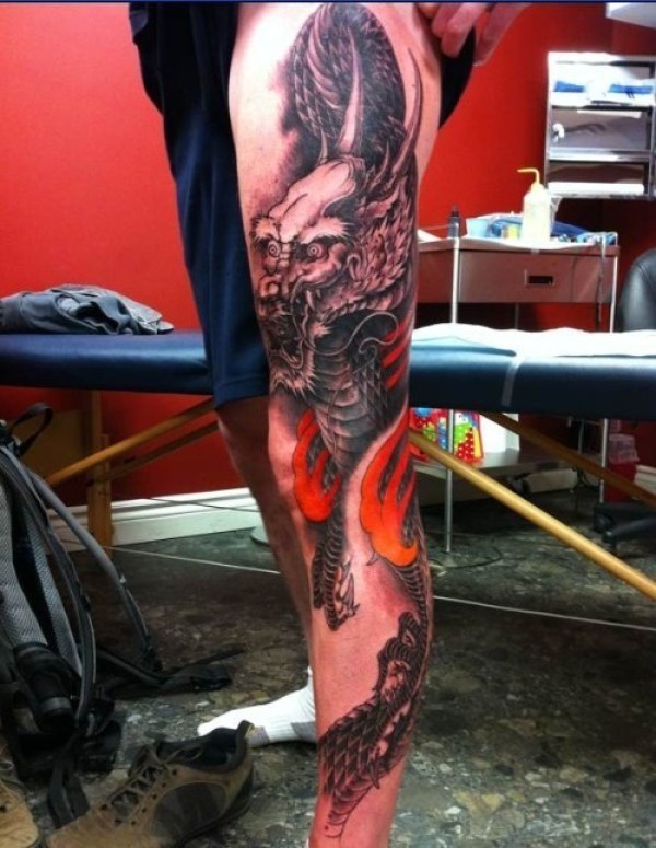 霸气的腿部纹身之满腿的龙纹身_龙纹身图案大全_纹身图吧