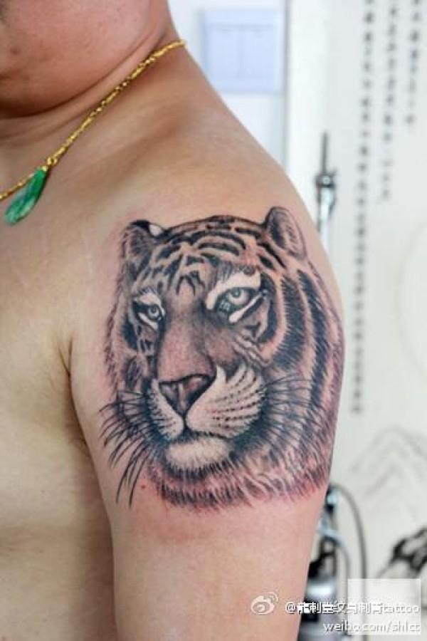 上海66纹身图库龙刺堂纹身作品大臂老虎纹身_龙纹身图案大全_纹身图吧