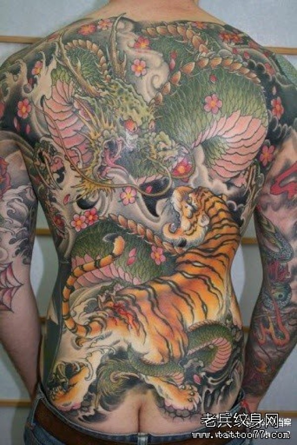 男人后背超酷霸气的满背龙虎争斗纹身图案_龙纹身图案大全_纹身图吧