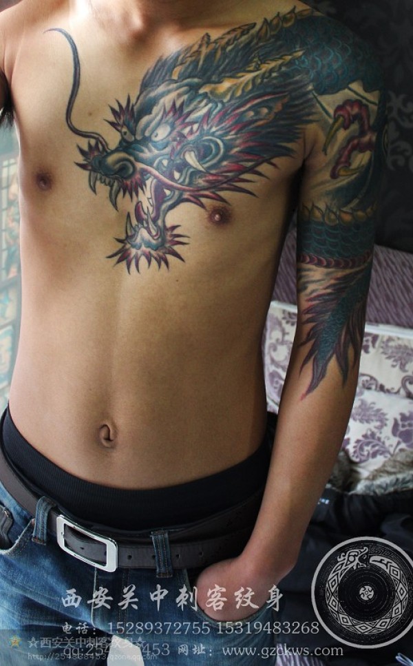 半胛龙纹身修改遮盖西安关中刺客纹身_龙纹身图案大全_纹身图吧