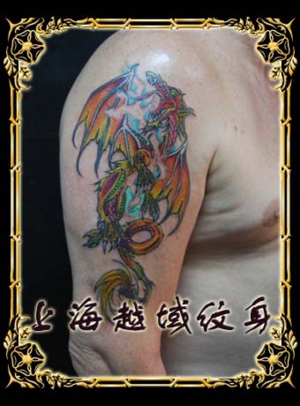 彩色翼龙纹身图案|上海最好的纹身店上海越狱纹_龙纹身图案大全_纹身图吧