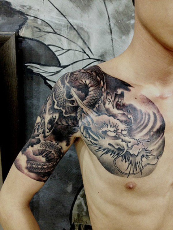 男生喜欢的很帅经典的一款黑灰半胛龙纹身图案_龙纹身图案大全_纹身图吧