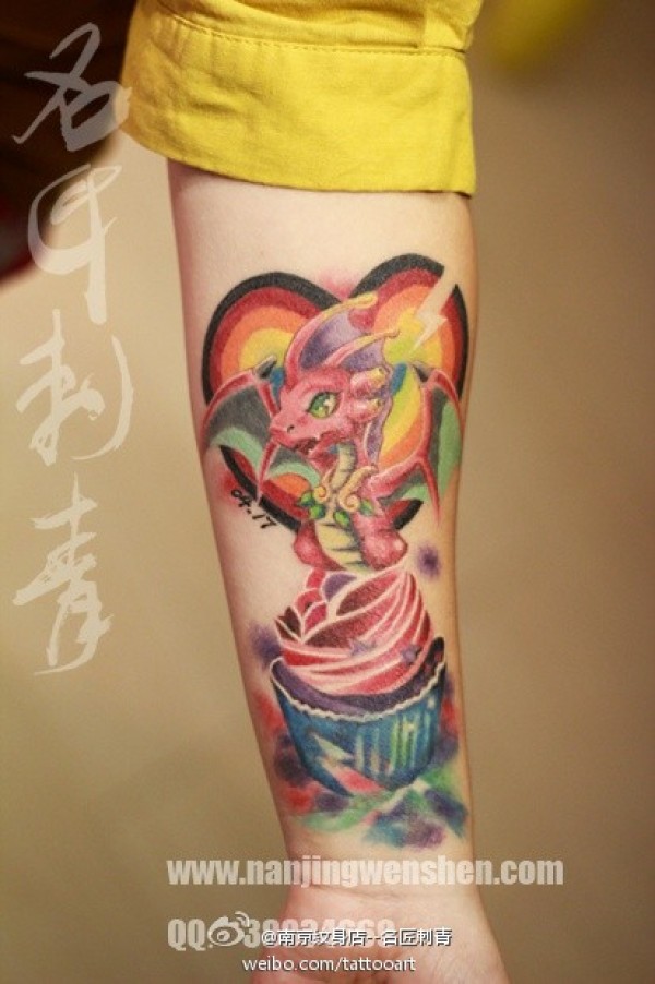 手臂时尚经典的欧美龙与冰激凌纹身图案_龙纹身图案大全_纹身图吧