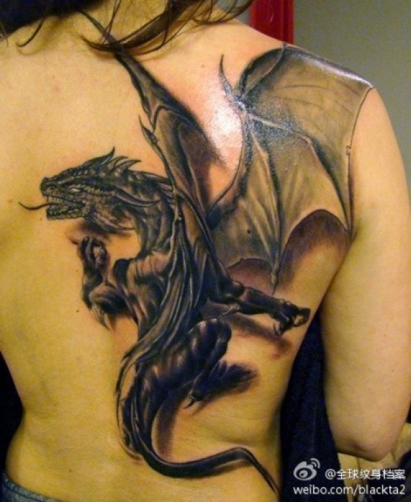 后背时尚很酷的一款欧美龙纹身图案_龙纹身图案大全_纹身图吧