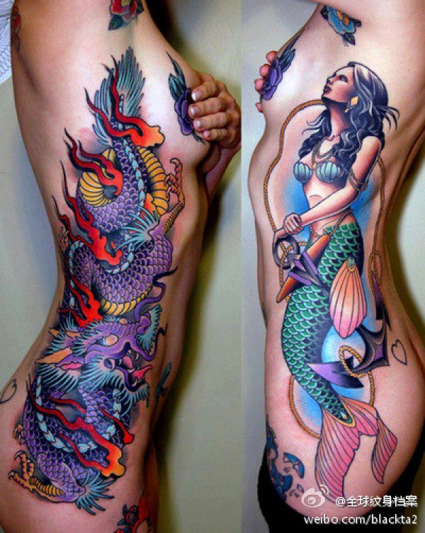 美女侧腰很酷的龙与美人鱼纹身图案_龙纹身图案大全_纹身图吧