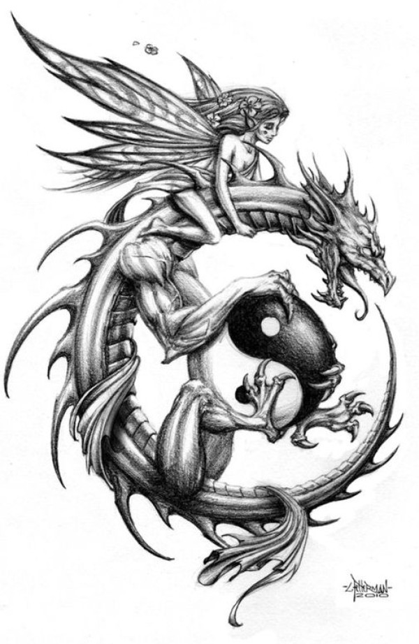 一款很帅的龙与精灵纹身图案_龙纹身图案大全_纹身图吧