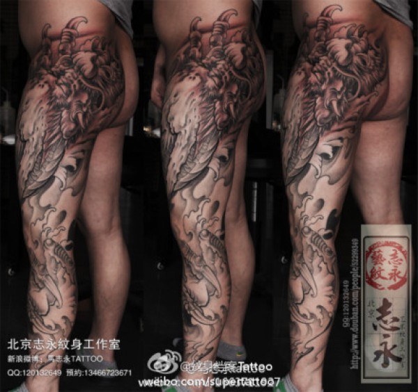 男腿部超酷时尚的包腿龙纹身图案_龙纹身图案大全_纹身图吧