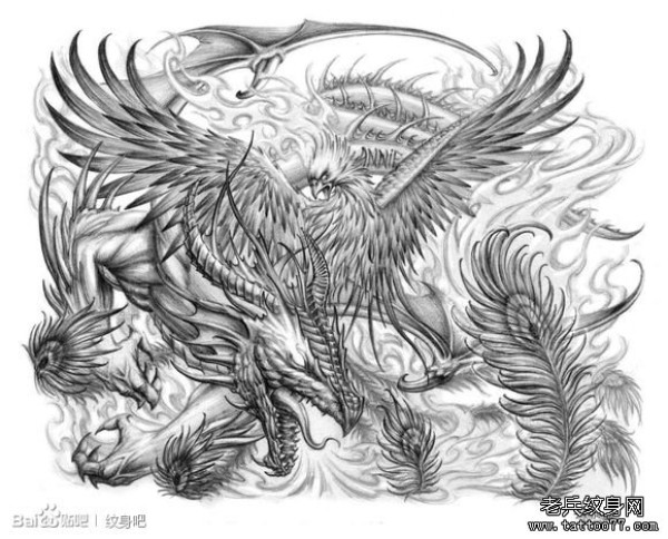 一款很酷经典的欧美龙与凤凰纹身图案_龙纹身图案大全_纹身图吧