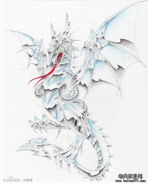 一款另类超酷的欧美机械龙纹身图案_龙纹身图案大全_纹身图吧