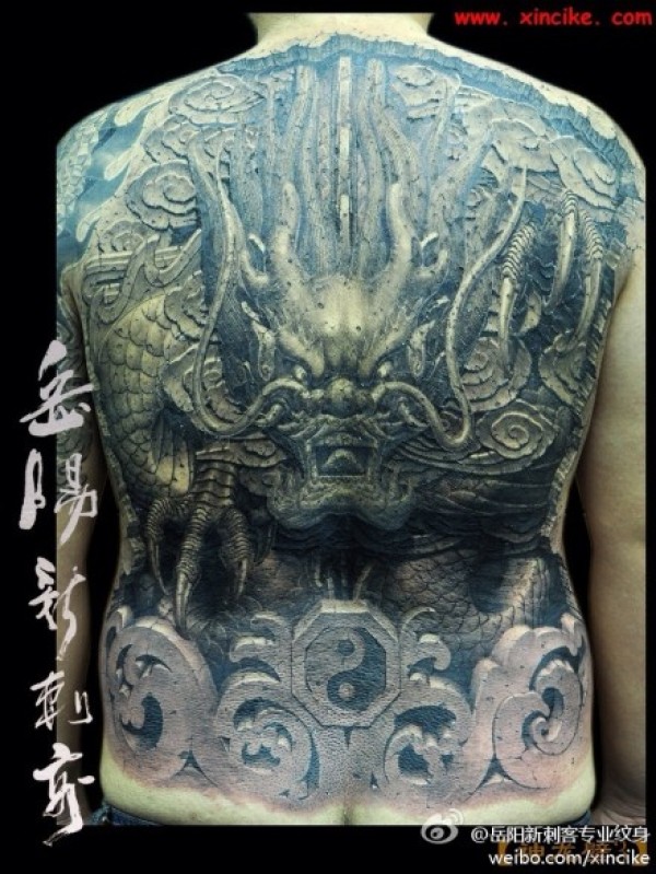 超酷霸气的满背石雕龙纹身图案_龙纹身图案大全_纹身图吧