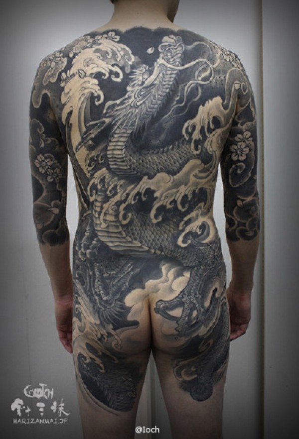 霸气超酷的满背黑灰龙纹身图案_龙纹身图案大全_纹身图吧