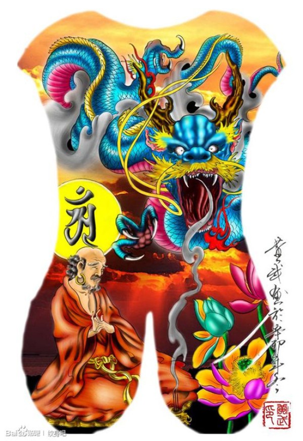 后背霸气超酷的满背龙与罗汉纹身图案_龙纹身图案大全_纹身图吧