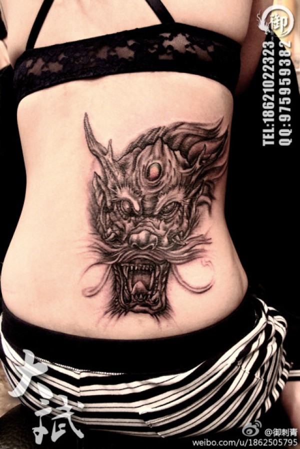 美女腰部霸气超酷的龙头纹身图案_龙纹身图案大全_纹身图吧