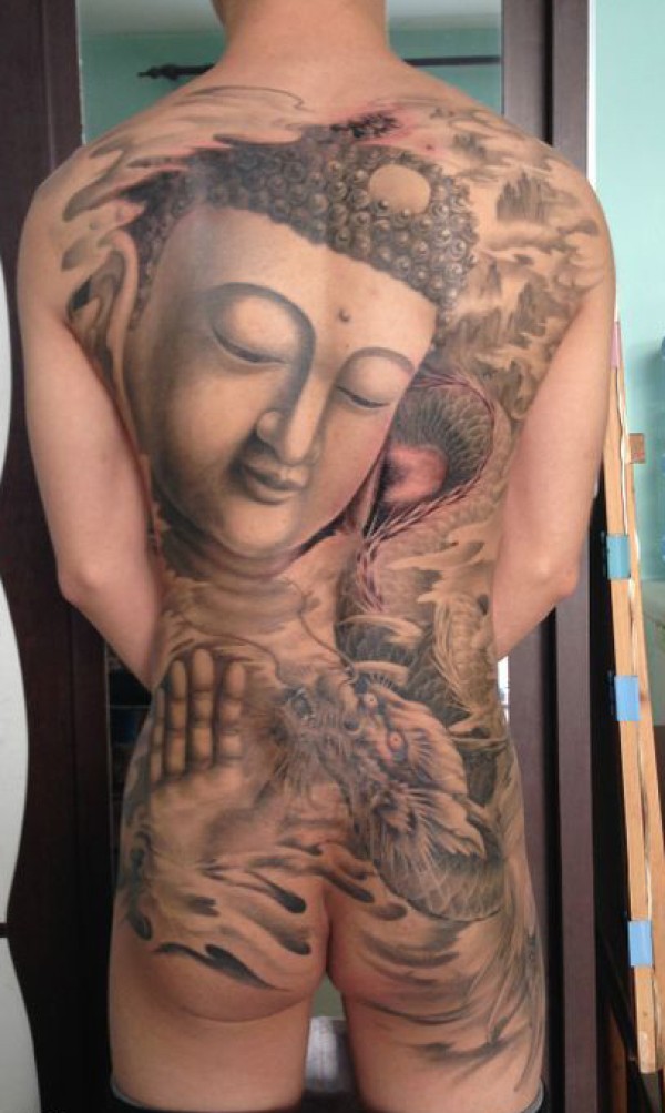 时尚帅气的满背观音与龙纹身图案_龙纹身图案大全_纹身图吧