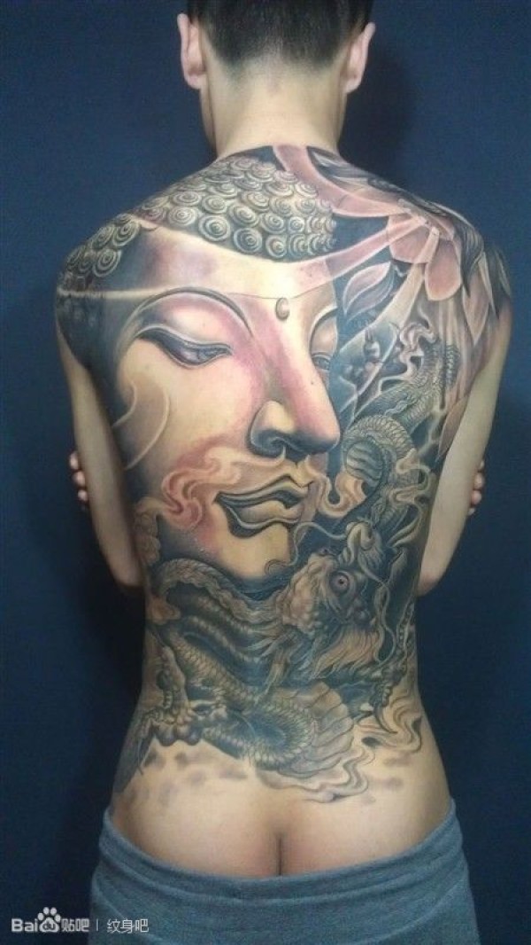 男生满背经典帅气的佛头与龙纹身图案_龙纹身图案大全_纹身图吧