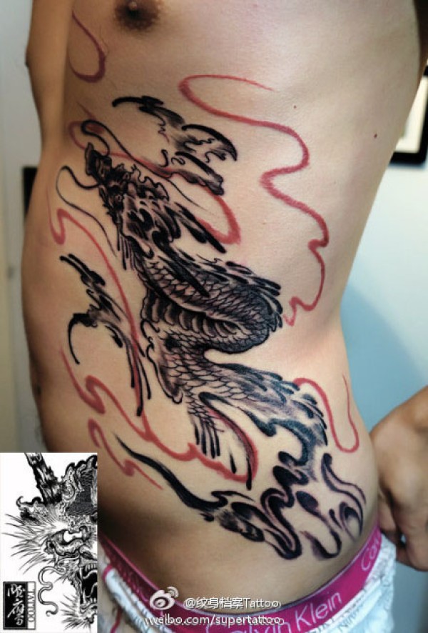 男生侧腰经典的水墨画龙纹身图案_龙纹身图案大全_纹身图吧
