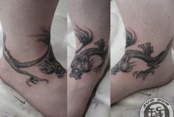 脚部一款经典的小龙纹身图案_龙纹身图案大全_纹身图吧