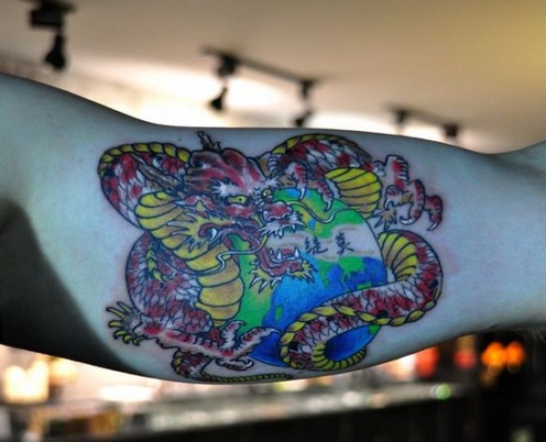 手臂内侧一款帅气的龙纹身图案_龙纹身图案大全_纹身图吧