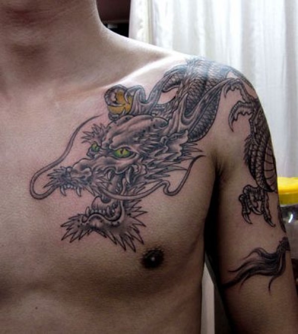 男人喜欢的超酷的披肩龙纹身图案_龙纹身图案大全_纹身图吧