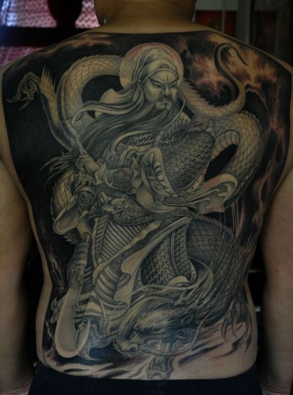 男人喜欢的满背关公骑龙纹身图案_龙纹身图案大全_纹身图吧