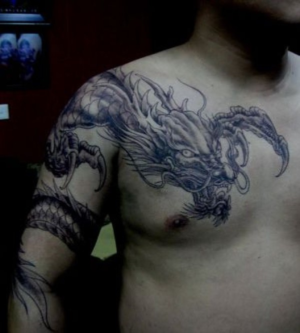 男人喜欢的霸气的披肩龙纹身图案_龙纹身图案大全_纹身图吧