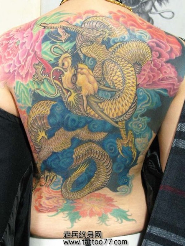 美女满背彩色龙纹身图案_龙纹身图案大全_纹身图吧
