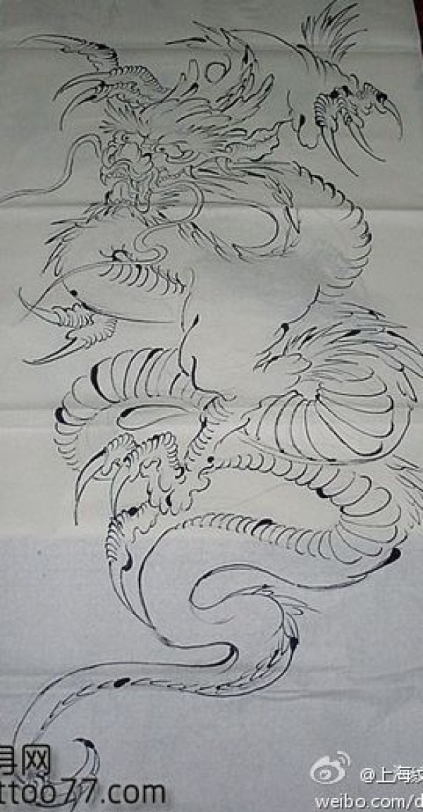 一款满背线稿龙纹身图案_龙纹身图案大全_纹身图吧