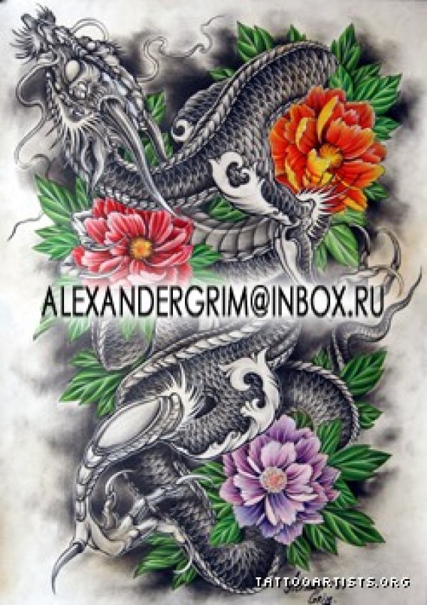 专业纹身艺术网推荐一款满背龙牡丹纹身图案图_龙纹身图案大全_纹身图吧