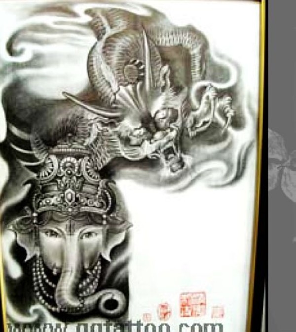 湖北武汉专业文身半胛披肩龙象神纹身图案图_龙纹身图案大全_纹身图吧
