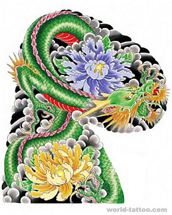 老兵纹身店半胛龙牡丹纹身图案图片_龙纹身图案大全_纹身图吧