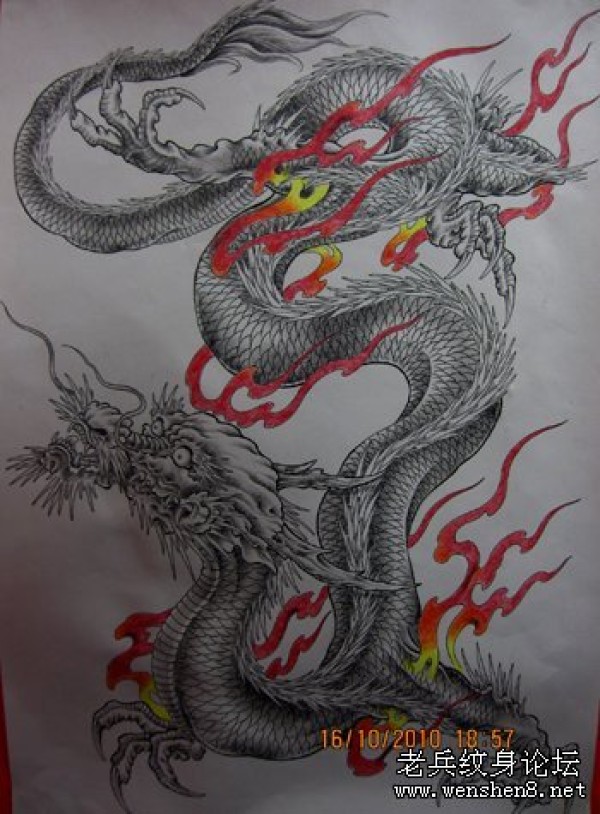 满背龙火焰纹身图案大全_龙纹身图案大全_纹身图吧