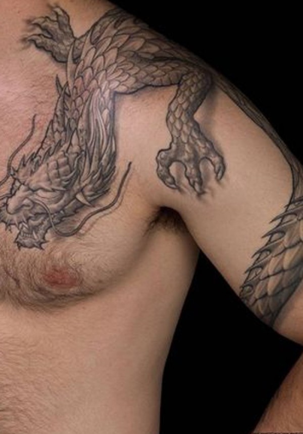 欧美披肩龙纹身_龙纹身图案大全_纹身图吧