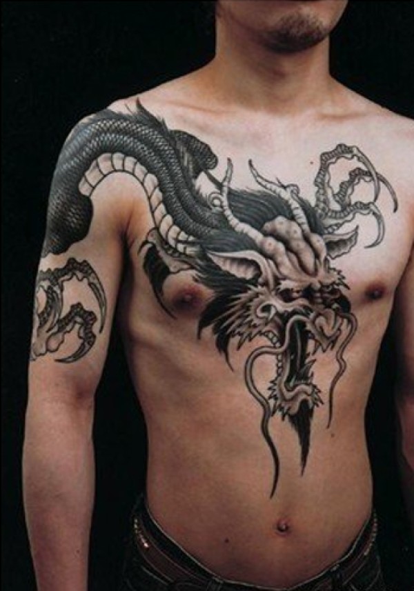 过肩龙纹身_龙纹身图案大全_纹身图吧