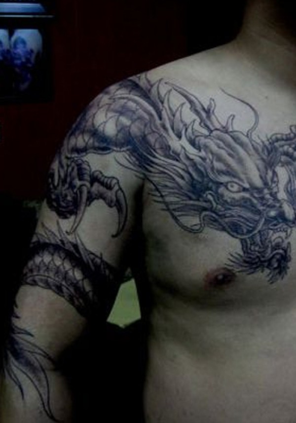 霸气的披肩龙纹身_龙纹身图案大全_纹身图吧