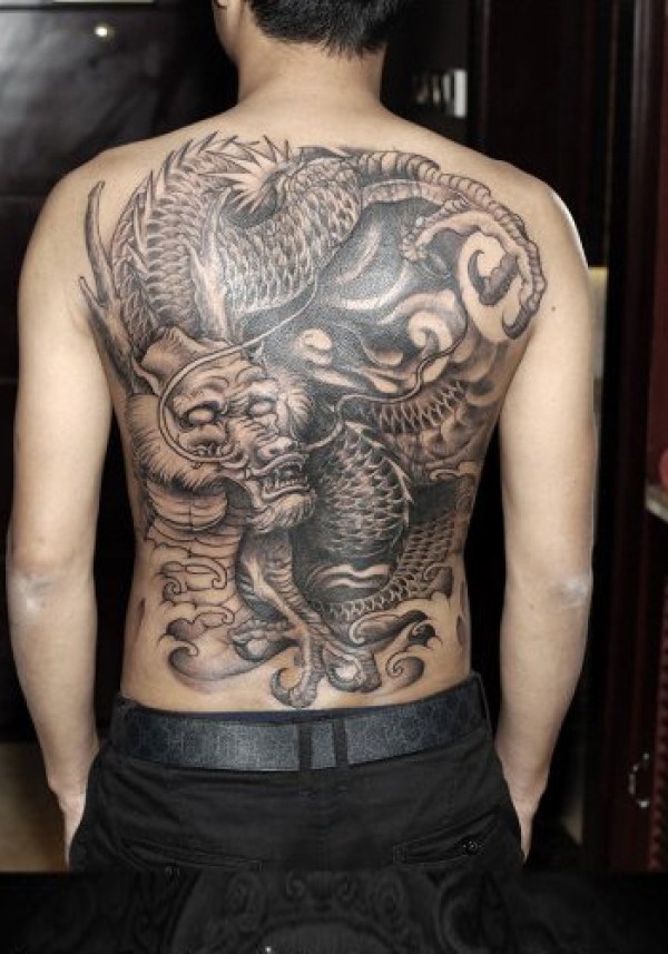 满背黑灰龙纹身_龙纹身图案大全_纹身图吧