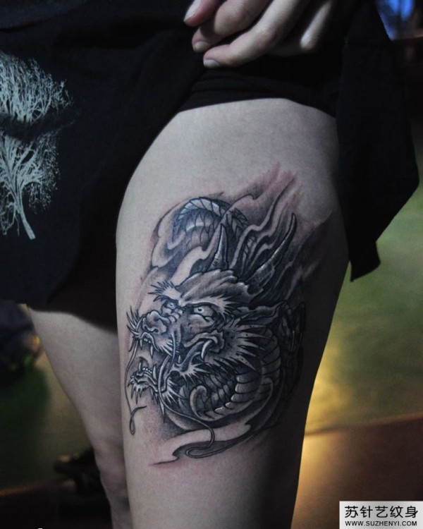 大腿龙纹身女孩纹身_龙纹身图案大全_纹身图吧