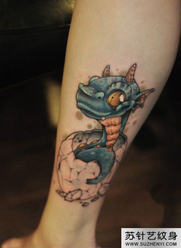 破壳龙宝宝小腿纹身_龙纹身图案大全_纹身图吧