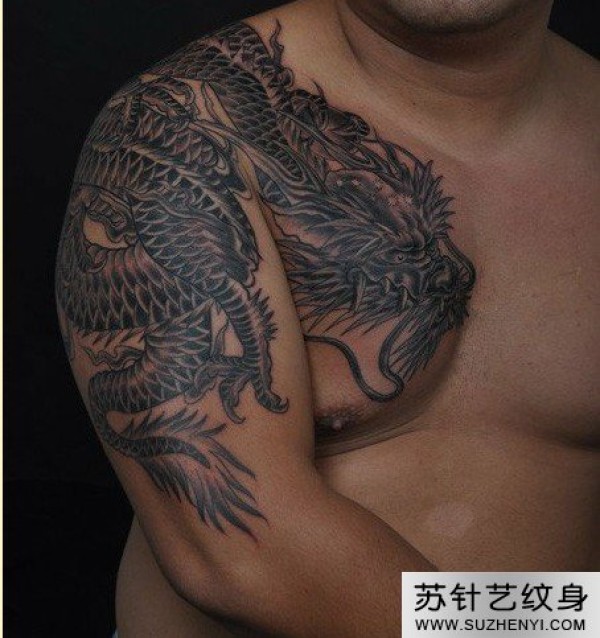 披肩龙图案纹身_龙纹身图案大全_纹身图吧