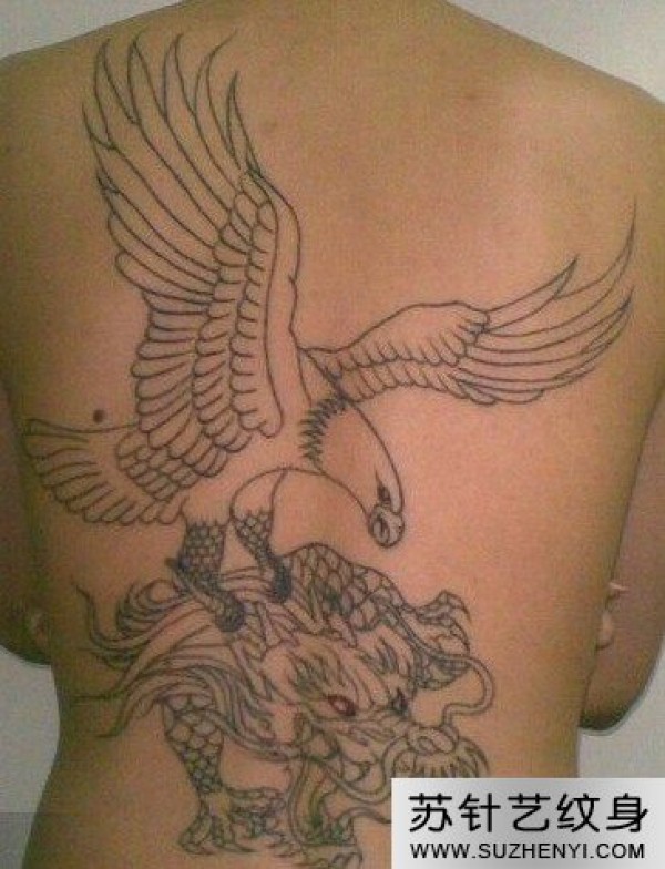 复古雄鹰与龙背部纹身_龙纹身图案大全_纹身图吧