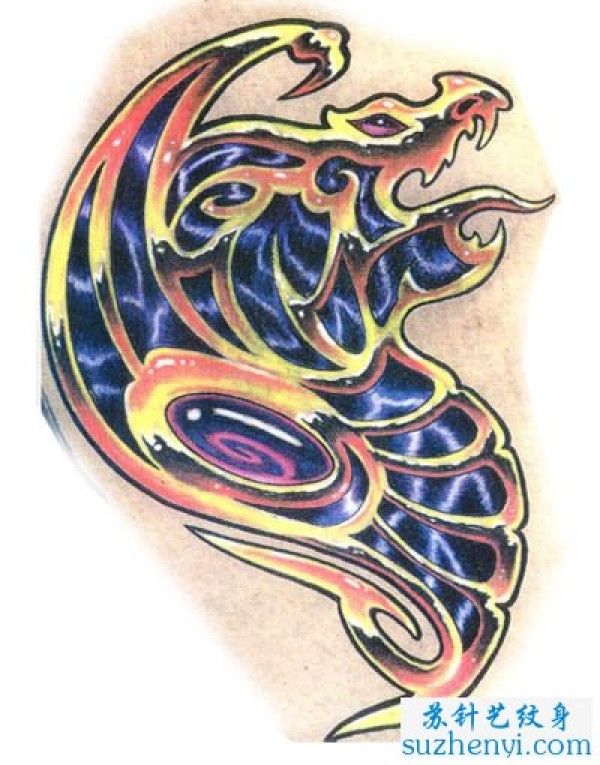 彩色欧式抽象龙纹身图案_龙纹身图案大全_纹身图吧