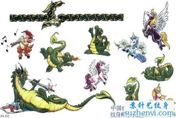 小恐龙独角兽纹身_龙纹身图案大全_纹身图吧