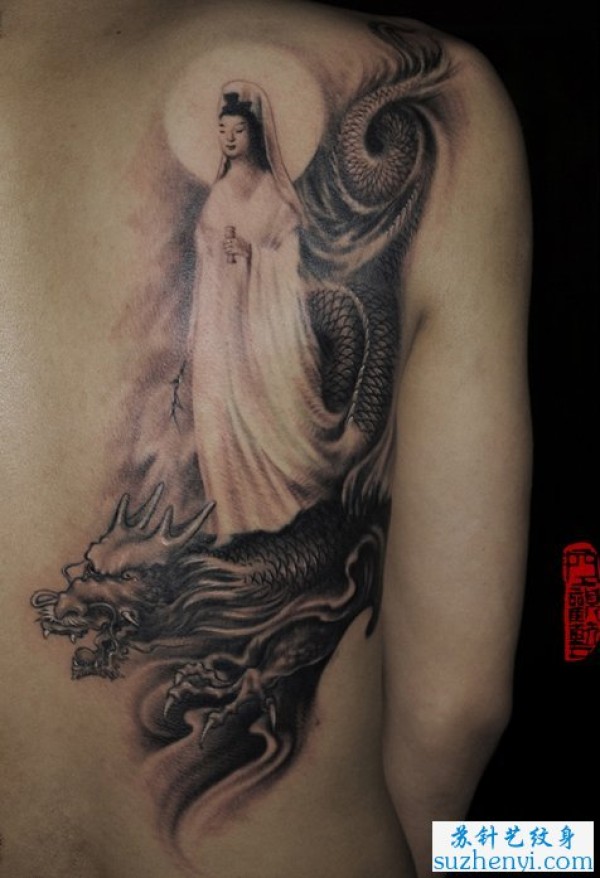 背部观音骑龙纹身图案_龙纹身图案大全_纹身图吧