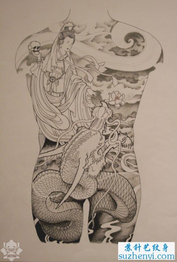 满背观音骑龙纹身_龙纹身图案大全_纹身图吧