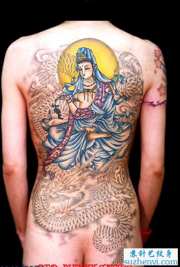 绚丽满背观音龙纹身_龙纹身图案大全_纹身图吧