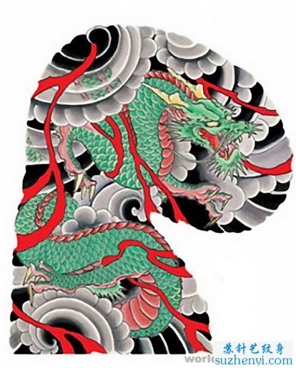 霸气半胛龙纹身_龙纹身图案大全_纹身图吧