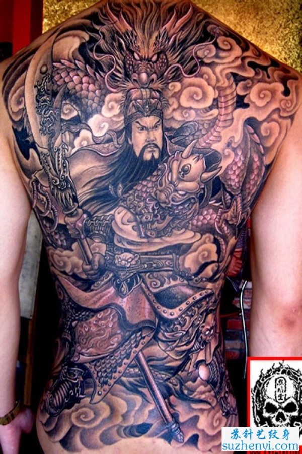 满背关公降龙纹身图案_龙纹身图案大全_纹身图吧