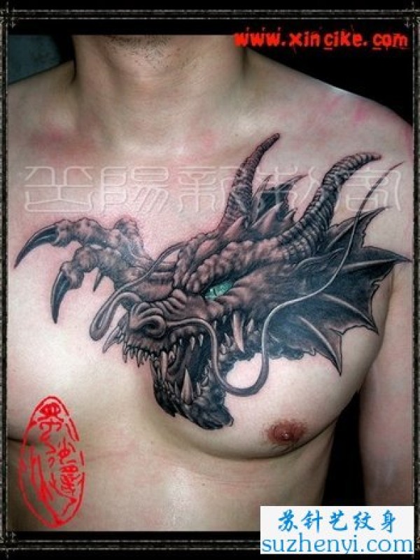 胸部龙头纹身_龙纹身图案大全_纹身图吧
