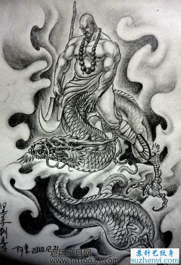 降龙罗汉纹身_龙纹身图案大全_纹身图吧