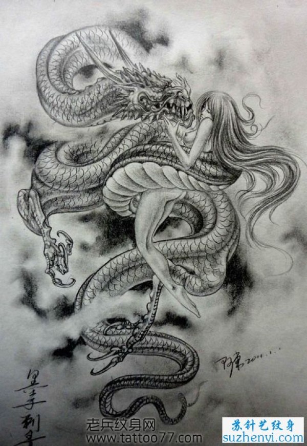 龙美女纹身_龙纹身图案大全_纹身图吧